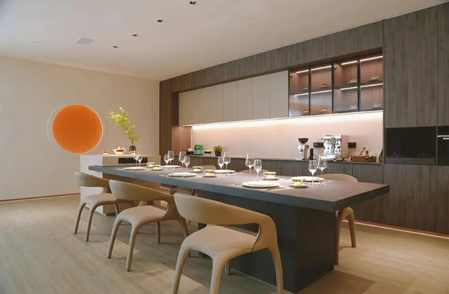 CAV智能客餐廳,一個會自主呼吸的智能生命體--無線藍(lán)牙Mech燈光系統(tǒng)是它的神經(jīng)網(wǎng)絡(luò),7.1聲道嵌入式音響是它的心跳,1500-5000K無級調(diào)色溫的光影是它變幻的表情。