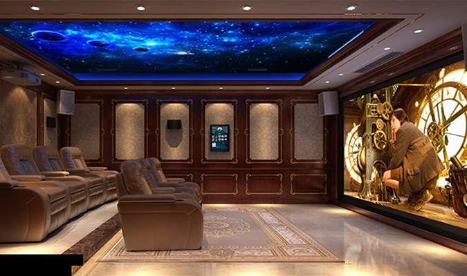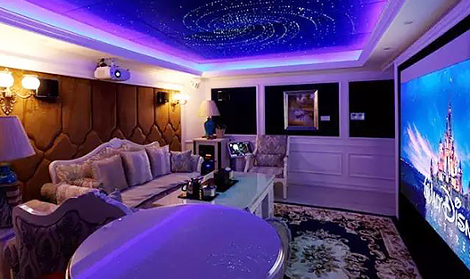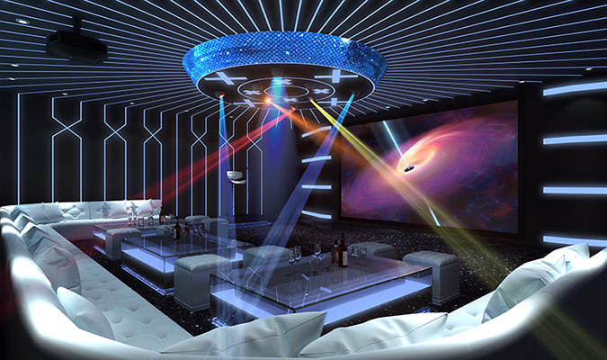 CAV 7.2.4杜比全景聲影院系統(tǒng)+4.1專業(yè)卡拉OK系統(tǒng),集影院、卡拉OK功能為一體的多功能影音室;喜歡藍色,希望影音室的色調(diào)能夠有藍色的元素,整體風格希望簡單又大氣。