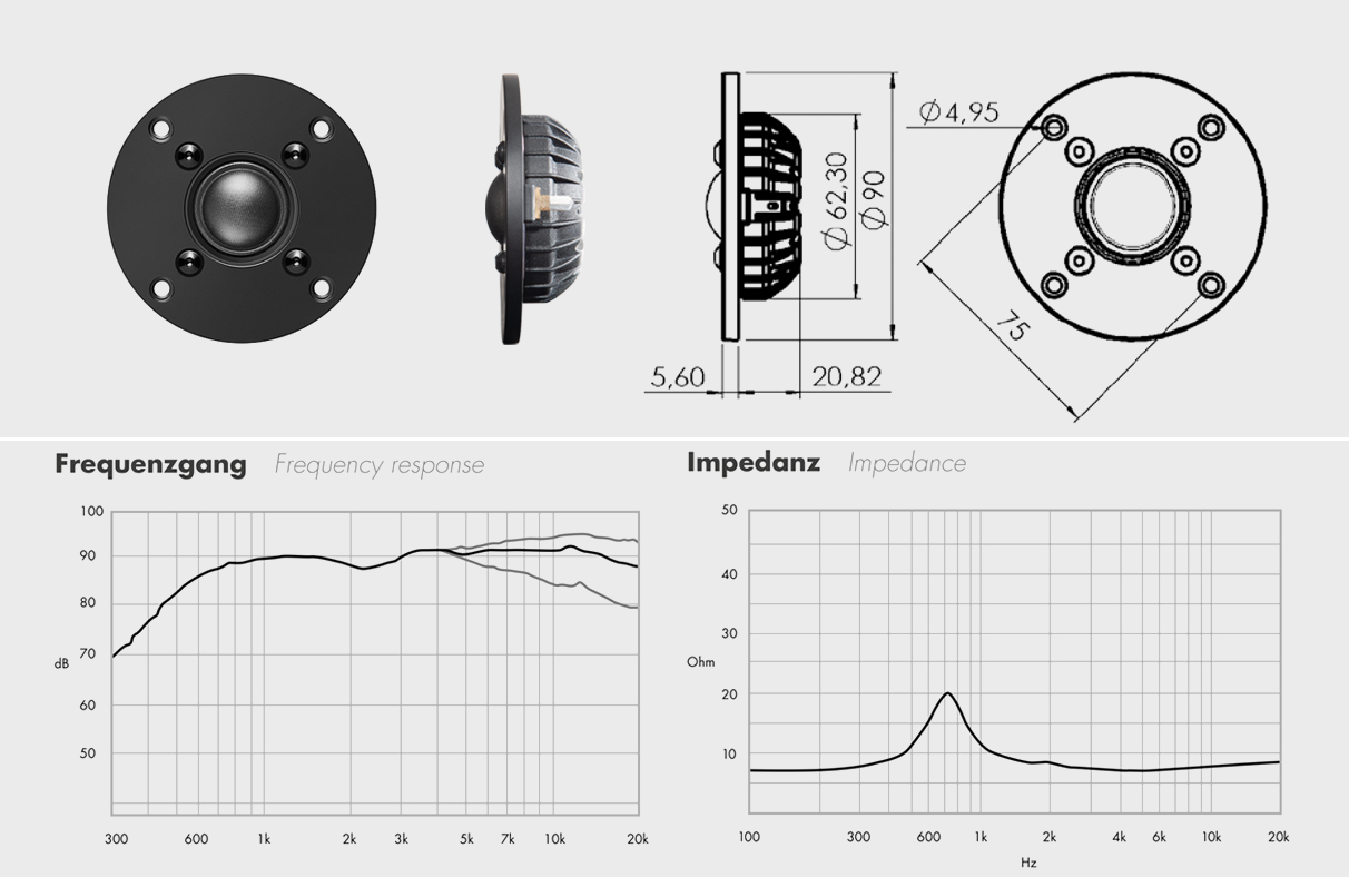 1英寸德國ETON全手工涂覆蠶絲膜球頂高音,強磁釹鐵硼磁路,聲音柔和細膩,整體連貫性及解析力極佳,能準確表達高頻的每一個細節(jié)。